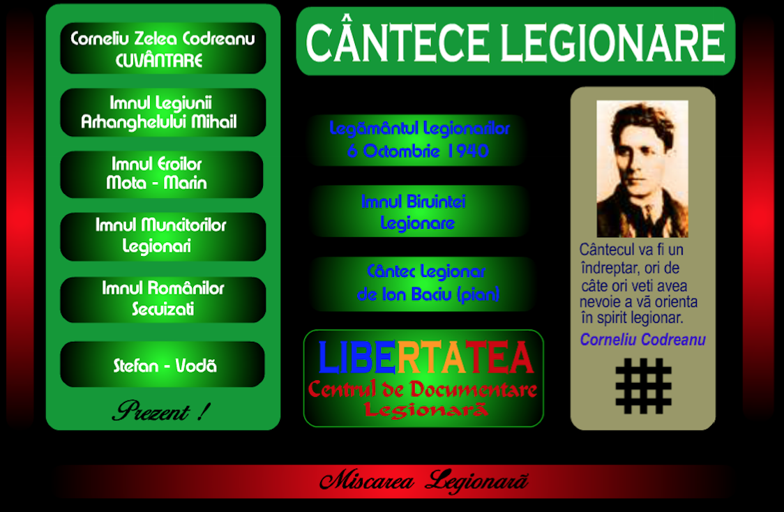 CANTECE LEGIONARE + VERSURI (PRIMA VERSIUNE PE NET, 1996 - CORUL LEGIONAR, ARANJAMENT MUZICAL SI DIRIJOR: PAUL CONSTANTINESCU, 1940)