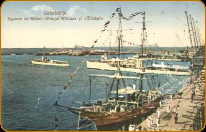 Portul Constanta: în prim plan, bricul "Mircea"; în spate, vasul de război "Mărăsti"