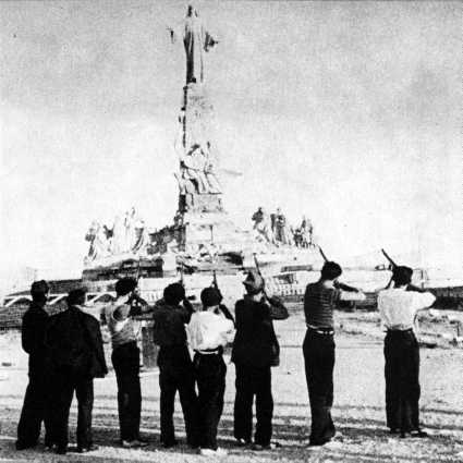 ALTE IMAGINI LEGIONARE ![]() Stânga: renumitul compozitor legionar, Nelu Manzatti; In centru: filozoful Ion Petrovici; Dreapta: scriitorul Gabriel Bălănescu ![]() Câteva portrete în penită apărute în revista "Universul literar". Dela stânga, la dreapta: Aron Cotrus, Lucian Blaga, Dragos Protopopescu si Nae Ionescu ![]() O frescă din secolul trecut: Mânăstirea Dragomirna. Transformată în închisoare la finele anilor '30, în timpul dictaturii carliste, Mânăstirea Dragomirna a fost locul de detentie a sute de legionari ![]() Comunisti spanioli trăgând în statuia lui Iisus Christos, în timpul războiului civil din Spania. "Se trăgea cu mitraliera în obrazul lui Christos! Se clătina asezarea crestină a lumii! Puteam noi să stăm nepăsători? Nu e o mare binefacere sufletească pentru viata viitoare, să fi căzut în apărarea lui Christos?" (Ion Mota - Testament) |