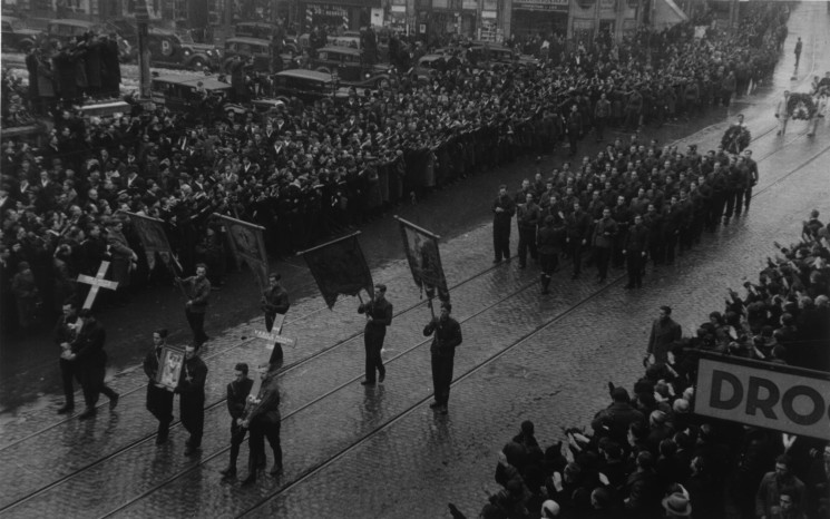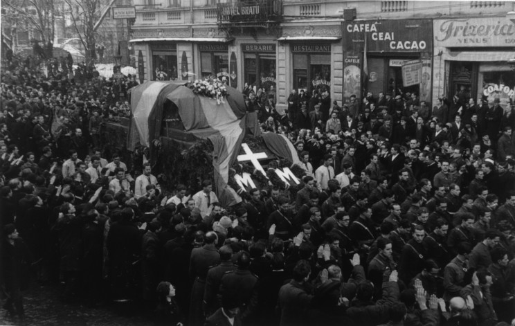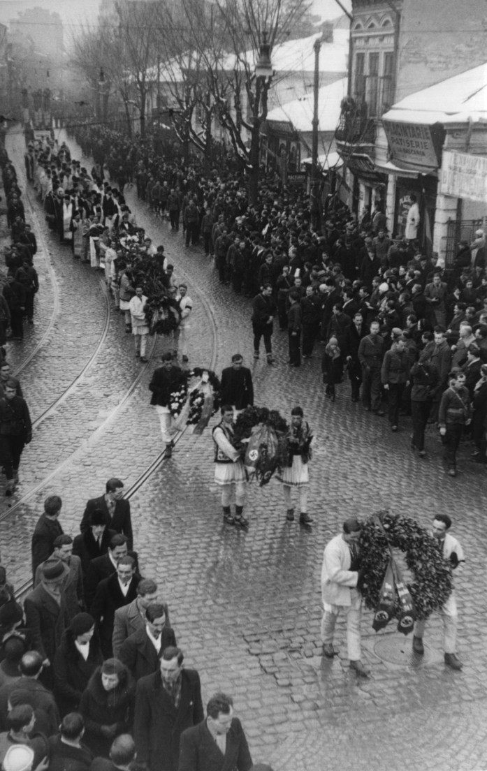 Trupurile celor doi eroi străbătând Bucurestiul spre Casa Verde, purtati pe ultimul drum de sute de mii de legionari si locuitori ai Capitalei cerniti de durere...