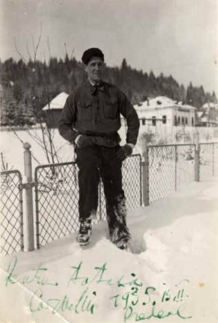 Căpitanul Codreanu (cu sabia) împreună cu doi camarazi de arme. In dreapta: Căpitanul la Predeal, 13 Februarie 1935.