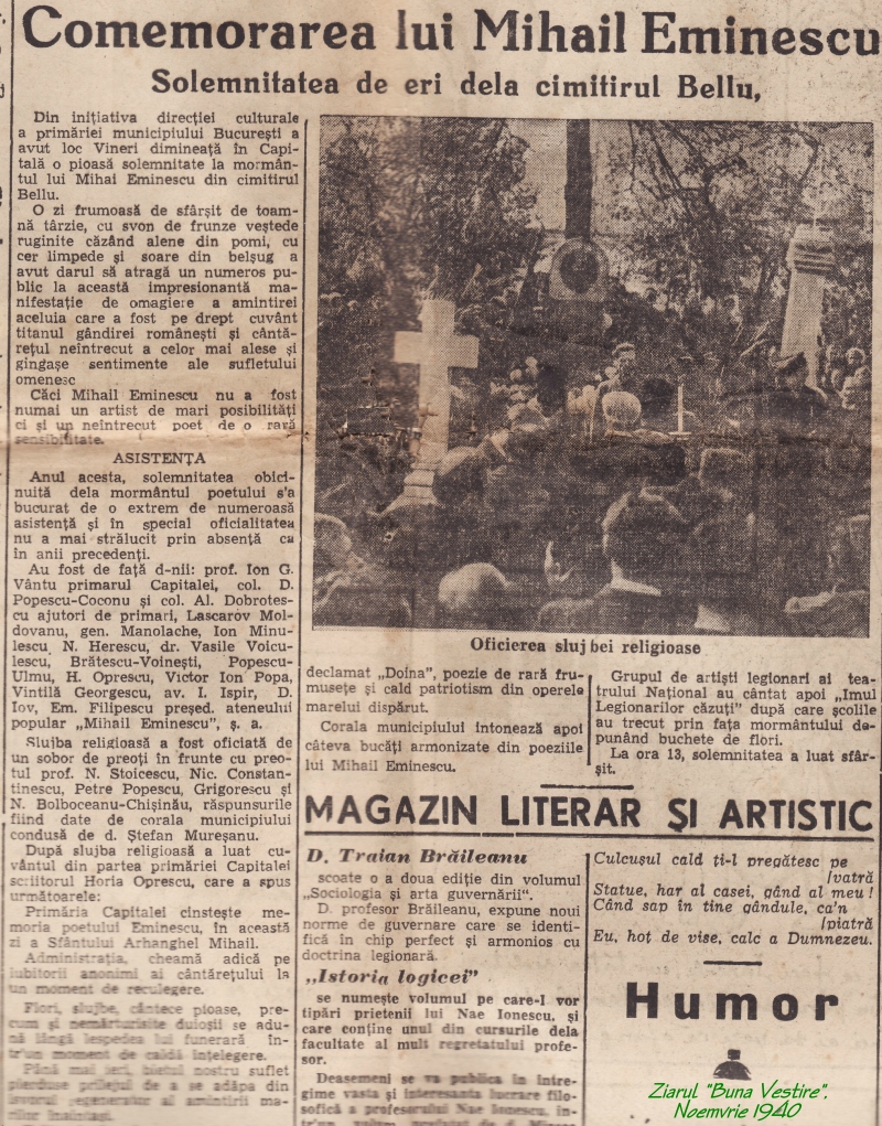 Dintr’un punct de vedere, şi anume, dintr’un punct de vedere metafizic, lucrurile nu sunt ci se fac. Ce însemnează asta, că lucrurile se fac ? Insemnează mai întâi că se agită, că există acolo, în inima lor, o strădanie. Nu se ştie cum, în ce fel; o strădanie spre ceva, după un anumit plan. Destul atât, că lucrurile se agită. Şi mai însemnează ceva; mai însemnează anume că acea strădanie există în lucruri dinaintea lucrurilor, de când lumea. Cum există ea în lucruri dinaintea lucrurilor ? Intr’un fel se poate. Strădania există ca potentă, ca virtualitate a lucrurilor, şi prin ea se fac lucrurile. Dar acest dinainte sau acest de când lumea nu este un punct determinabil, precis determinabil pe linia timpurilor. El poate fi aruncat în trecut la infinit, şi numai acolo. Altfel nu se poate. Şi asta însemnează iarăşi că această strădanie vine din infinit şi va dura în viitor tot până la infinit. Căci n’are niciun motiv să moară, şi nici o raţiune. (more…)